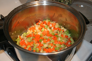 Today was definitely a chicken soup day. The wind was blowing, it's been colder than heck, my son ended up staying home from school with 'the fever' again, my DH was feeling crummy as well and requested some chicken noodle soup. So I did what I normally do on days like today and whipped up some homemade soup. There are a ton of short cuts for making soup that includes using store bought broth. This is something I just can't bring myself to do when making this soup, only because homemade stock is so easy to make.